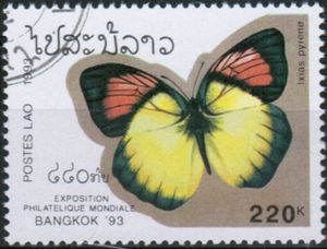 Stamp Yellow Orange Tip Ixias Pyrene Laos Bangkok 93 Stamp Exhibition Mi La 1381 Sn La 1146 Yt La 1105 Sg La 1367 - Yellow orange tip , ixias pyrene is a small butterfly of the family pieridae, that is, the yellows and whites, which is found in india.