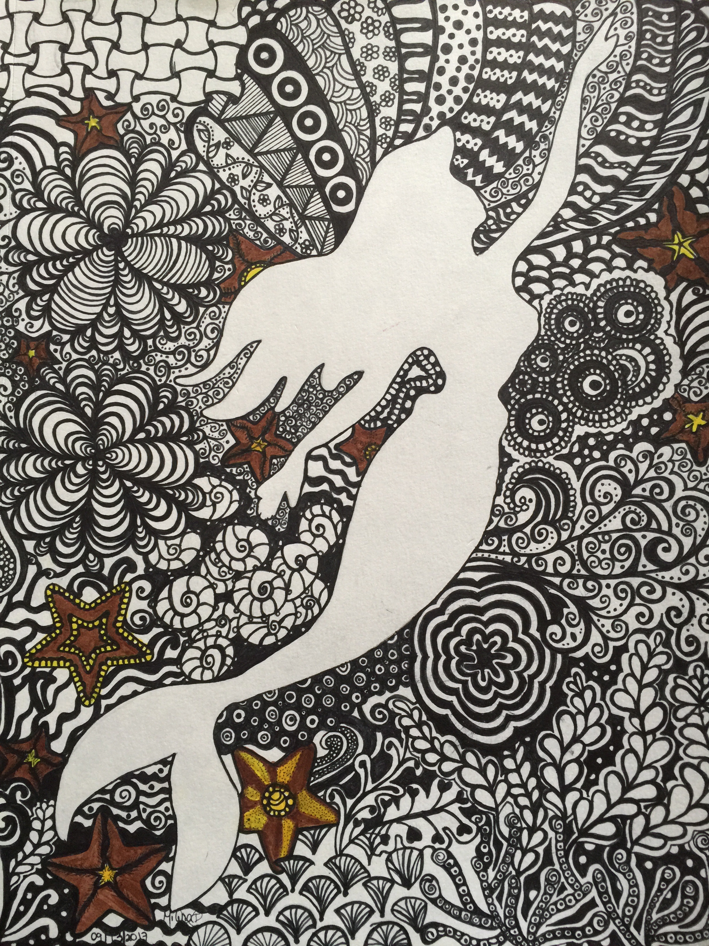 Mermaid Zentangle Style By Cindy Vasquez - Free mermaid mandala little mermaid mandala zentangle portrait simple zentangles for kids disney zentangle patterns mermaid hair drawing under tale zentangle zentangle mermaid with baby.