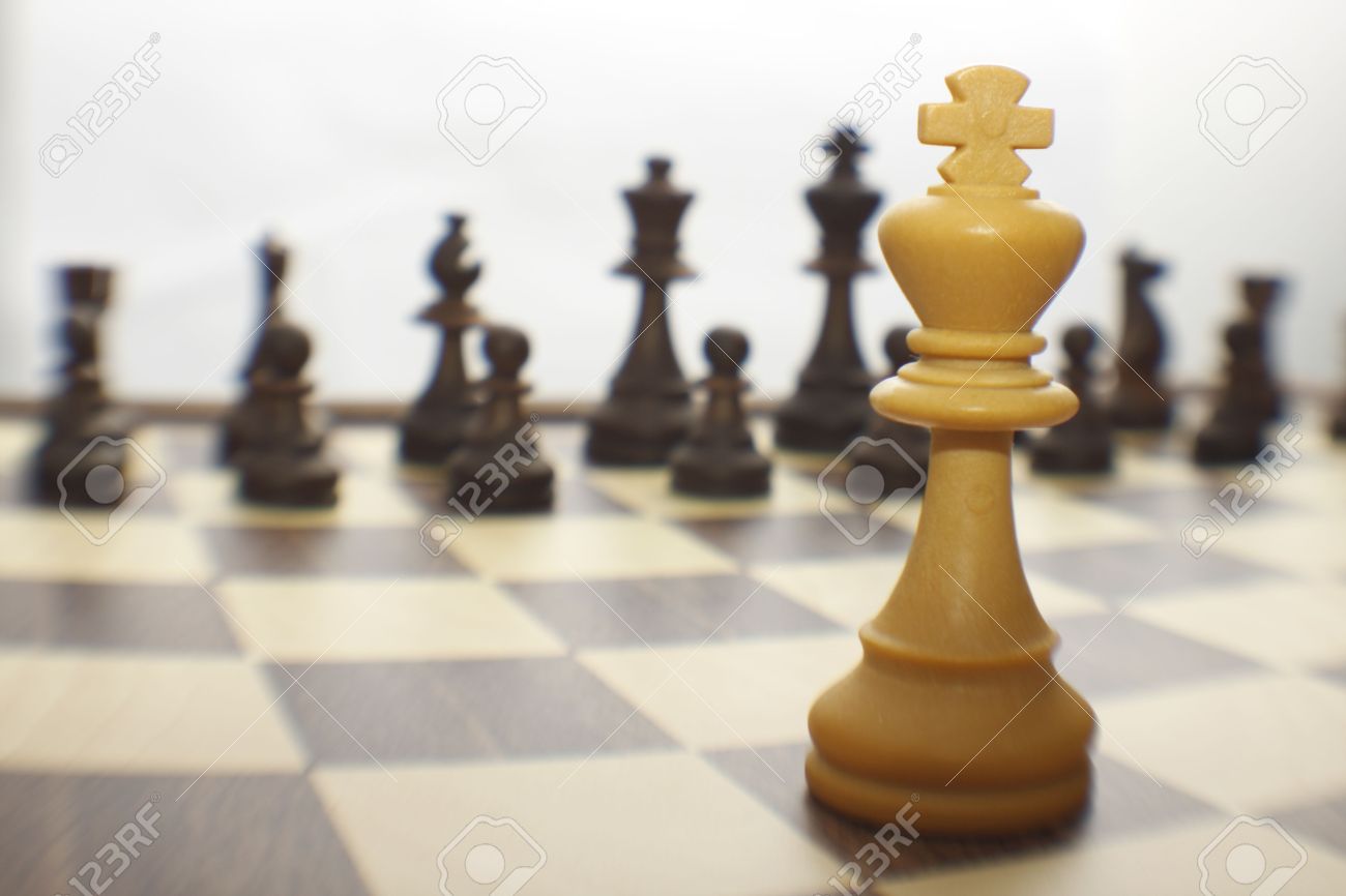 White King On Chessboard / Business advantage or strong leadership concept.